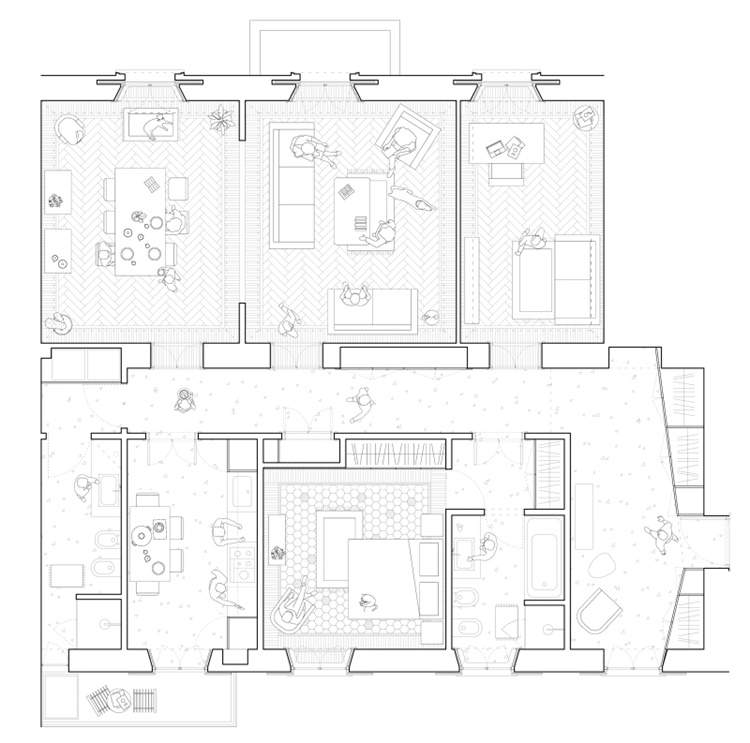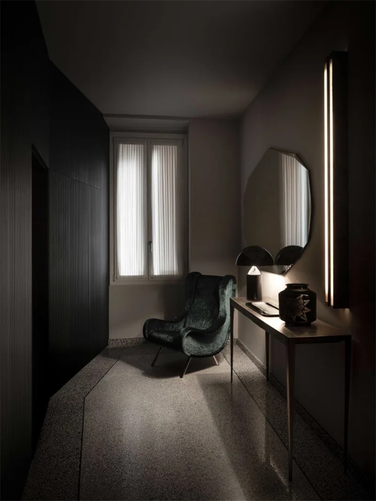 ATOMAA设计公司完成了米兰一座150平方米的公寓装饰改造。项目借鉴了其所在建筑的特点,同时重新诠释了20世纪初的设计氛围。这项干预措施完全根据业主(一位年轻的专业人士)的需求品位进行调整,重新定义了最初的布局:3个卧室、小客厅和工作室,并在起居室和卧室之间形成了分隔。新环境包括一间卧室、休息室和工作室/客房。翻新后,房屋更适应现代生活方式。