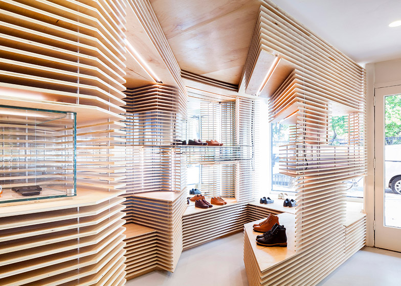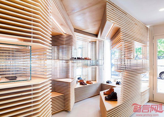 澳大利亚设计师Jordana Maisie完成了纽约曼哈顿鞋店室内装饰。Feit是定位高端消费人群的鞋业品牌,商店室内设有用层合板构造的不对称的陈列区。商店面积39平米,位于纽约西村,于本月对外营业。设计旨在反映Feit真皮皮鞋的手工制作水准,皮鞋设计结合了当代主义和极简主义审美学。设计师表示,商店具有独特的个性,注重流程、工艺和创新,并创造了手工和机械制造之间的张力。