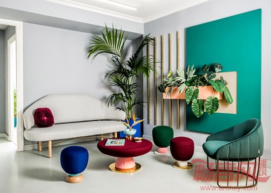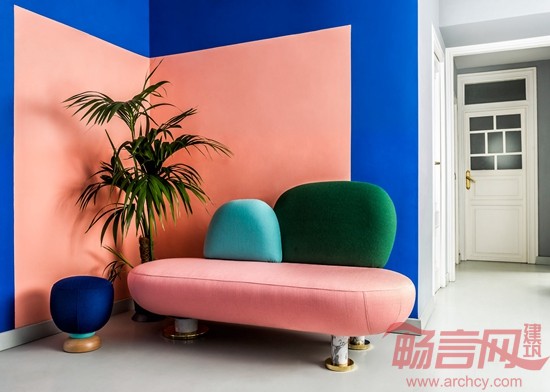 为了与他们设计的后现代产品相呼应,Masquespacio在其工作室室内设计中大胆地采用了鲜艳的色调和形成鲜明对比的材料组合,这也是他们的标志性风格。