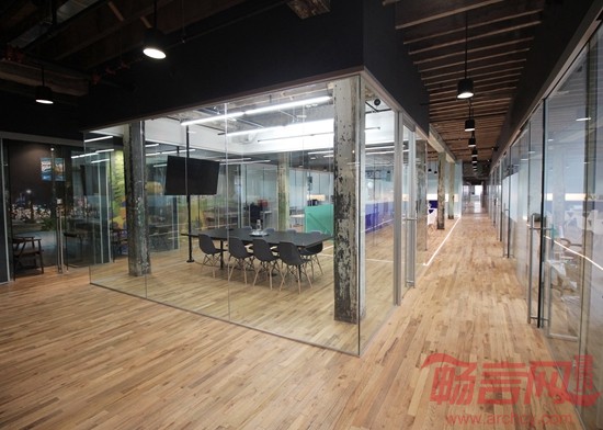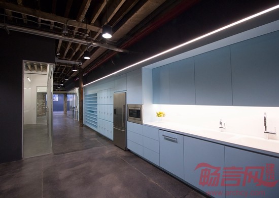 项目包括一个公共工作区、多间独立办公室,顺着大厅设有厨房、就餐区、会议室、休息室,以及屋顶平台。工作区可容纳500个工位。