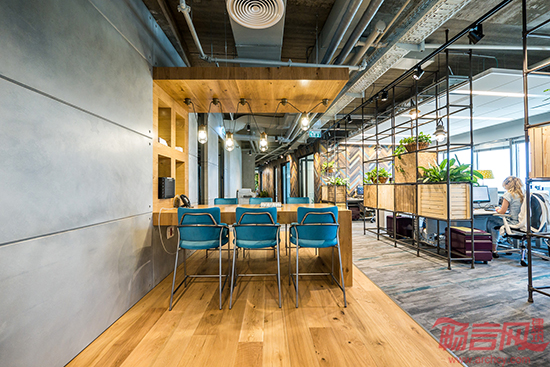 这种充满创意的开放式工作区域中有许多正式和非正式的多人协作区域,在主要工作区和公共活动区域之间形成了很好的过渡。多功能的隔断不仅将工作区与过道分割开来,还可用作储物空间。
