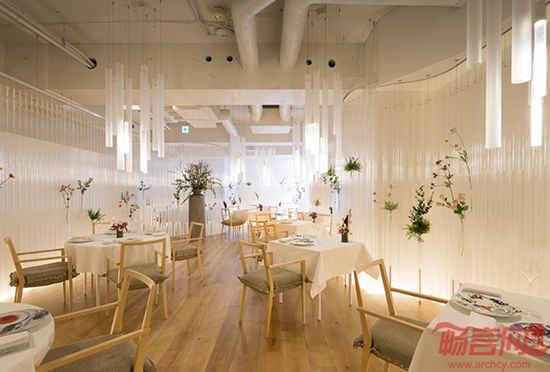 在日本东京,建筑师隈研吾完成了一项异想天开的法式餐厅室内设计。餐厅是由一位日本厨师开的,他曾经在法国的3星级米其林餐厅工作过。