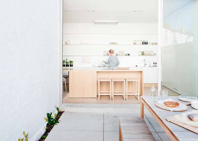Studio Four公司运用浅色美洲橡木设计了嵌入式家具,装饰了位于澳大利亚维多利亚的一所住宅。住宅装修目的是满足日益庞大的家庭需要。Alfred路住宅户外空间面向南方,在南半球的澳洲直接光照不足,因此设计师采用了白色和浅色木材装饰空间,为室内增添了明亮感。设计师表示,“我们之所以选择美洲橡木,是看中了其柔和的色彩和整齐的纹理。同时,这种材料同岛式厨房和餐桌椅搭配协调。”