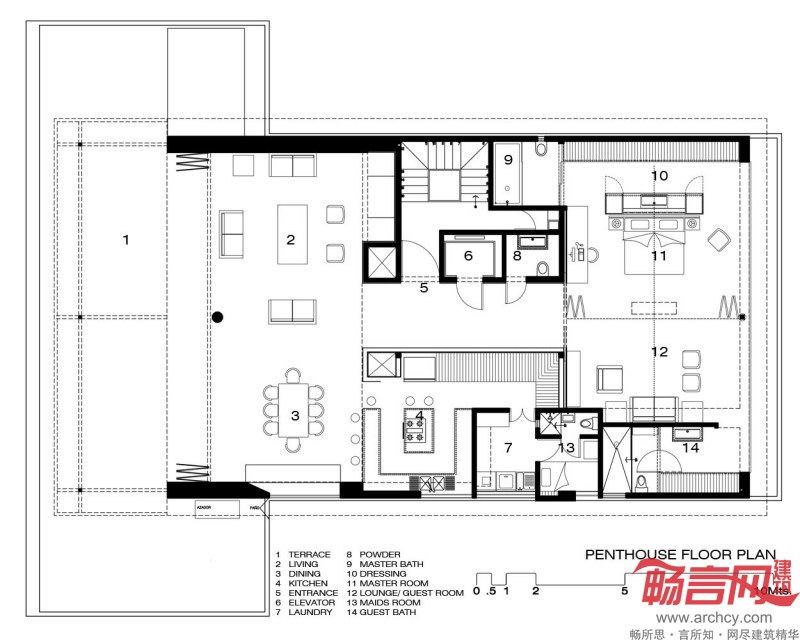 “这栋公寓建于上世纪70年代,是典型的墨西哥殖民建筑风格,”设计师说:“阁楼在公寓的15层,内部有很多柱子,为我们拆除部分墙壁提供了条件,便于扩大室内空间。为了增强室内光线,我们还在外墙上凿开空间,安上了大玻璃窗。”