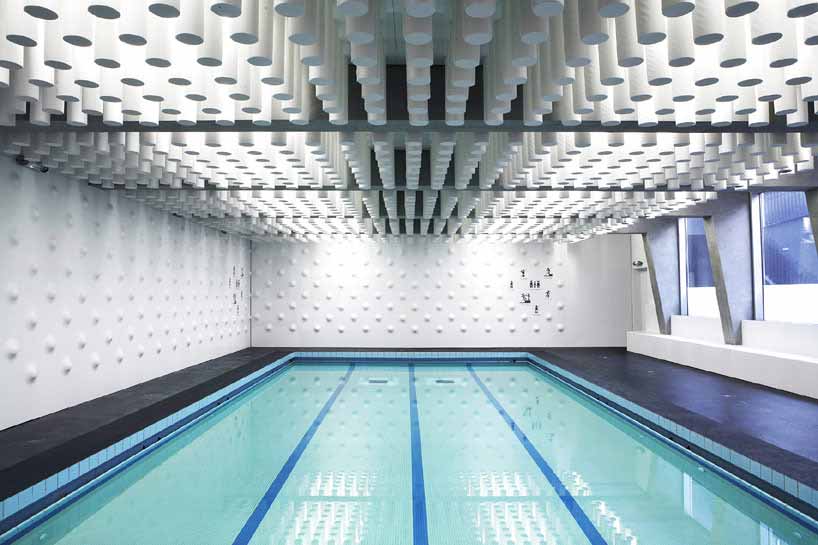 Yoonseux建筑事务所完成了巴黎Atlas体育中心的改造工作,为用户带来具有触感的浸入式体验。体育中心所在的建筑建于1970年代,由于年久失修,建筑亟待改造重建。项目采用了流畅的空间和对于直觉感官的体验式设计,改造了原先建筑的狭窄结构和视野的缺失。建筑的室内部分进行了彻底的翻新,主泳池区域的墙面和天花板上添加了球茎形的表面。