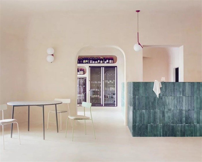 洞穴般的粉红色内饰、暖色调的花岗岩和撒丁岛的大地色调相结合,这家餐厅位于意大利切尔沃港的美丽环境中。这家 80 平方米的餐厅由米兰建筑实践工作室 wok 设计,从当地景观的色调和元素中汲取灵感。