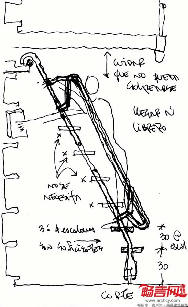 各板块的处理呼应了原本建筑的加泰天花板上的金属梁。楼梯过道被一圈轻薄的不锈钢丝吊起;栏杆采用N型连续折返的样式;书架隔板上装有灯管,每册书均被照亮,书本看似在空间中颤动。从工业设计到建筑的完整方案给位于Castro Leal家乡Coyoacan的其私人图书馆提供了参考。设计效果便于理解,平易朴实。