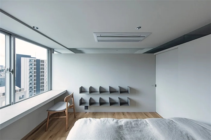 Suppose工作室完成了一套极简私人住宅设计,位于东京时尚的惠比寿区。由于空间元素体积小,给人开敞的感觉。材料和色调有助于营造出宁静的室内氛围,绿色植物增添了活泼的气息。