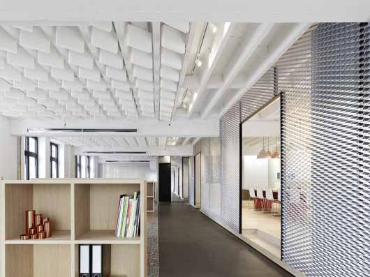 Alexaner Fehre工作室完成了位于德国Schorndorf的Movet办公Loft设计。项目面积为400平米,属于复式Loft结构。Movet公司曾经的办公地点是一个车库。如今,这家传送带行业的知名公司选择一个库房改造的复式空间作为新的办公室。设计方案巧妙的利用了不同区域,在有限空间中容纳了多种需求,同时给人宽敞舒适的感受。“Movet工场”构成空间的核心,其功能是公司会议室。会议室外立面采用通风金属网立面,客户和访客得以进入办公室中央,快速融入公司日常业务活动中。