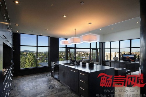 “这个顶层空间面积为3300平方英尺,室外还有一个同样大小的平台。业主是一对夫妇,他们酷爱娱乐,”设计师介绍说:“厨房采用了抬高设计,这样业主从厨房里就能看见远处的维多利亚海港和奥林匹克山。”