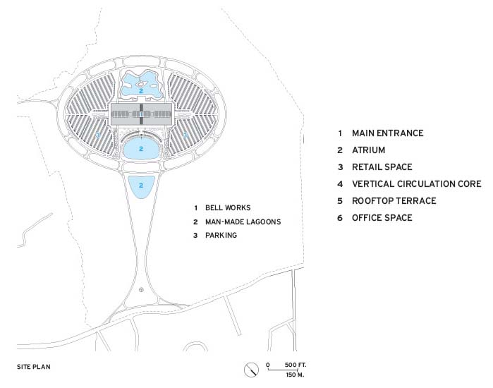 这一建筑出于埃罗·沙里宁之手,建成于1962年,为贝尔通信公司科研部门的所在地。建筑在上世纪90年代起开始空置,原计划于2006年拆除。在抗议声中,贝尔实验室大楼于2013年被萨默塞发展公司收购。开发商也从这一废弃建筑发现独特的商机,将其翻新改造,形成一个由办公、商业、活动与公共空间交织混合的新建筑——Metroburb。