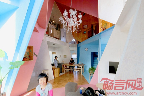日本Kochi工作室完成了一座典型的二层公寓楼的改造工作。项目坐落于东京郊区,建筑曾经受到被拆毁的危险,在建筑师提出改造方案后,幸运的得以保存。为了创建私人和公共空间,项目设计了一个联通八个房间的中央开敞空间。这一空间具有多个纤维板表面,每个表面添加了一种色彩的颜料,为室内区域增加了抽象主义魅力。