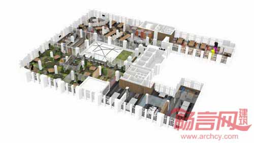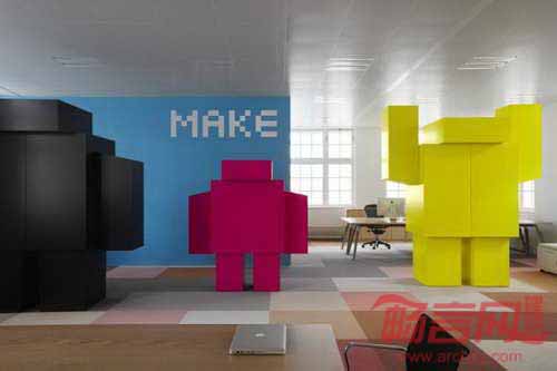 办公场地面积达2000平米,几乎所有设计都来自定制。WOW效果的室内装饰,配合了图画、各部门单独的logo、以及2.6米高“兔子”奖杯柜。JWT阿姆斯特丹公司在搬迁前重新组织了其构架,抱着“复杂世界需要全新工作方式”的理念,将其传统公司结构打破,将公司部门精简成三个“思索、实干和制造”。