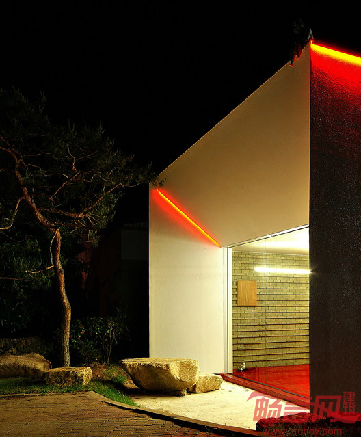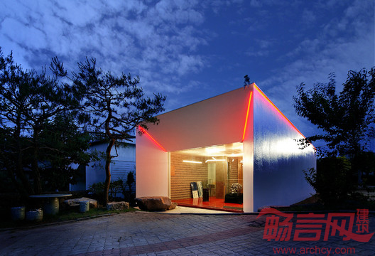 第一次到“巧克力盒子”的人可能会以为它是一个陈列室或者画廊,但实际上它是为作家Jeong Gil-Young打造的工作室。通过空虚感设计和大胆的颜色使用,这间工作室体现了作家和建筑师的个性。
