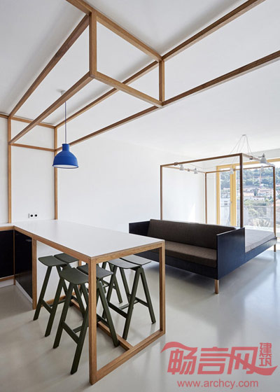 捷克建筑工作室DDAANN将布拉格的一套宽敞公寓的下层空间改造成了一套客房,这里还将用作团体骑车旅行的集会点。