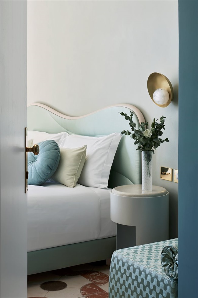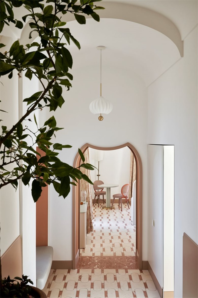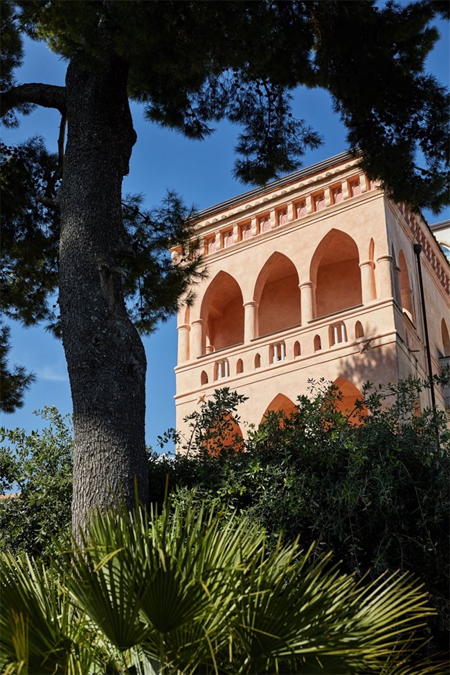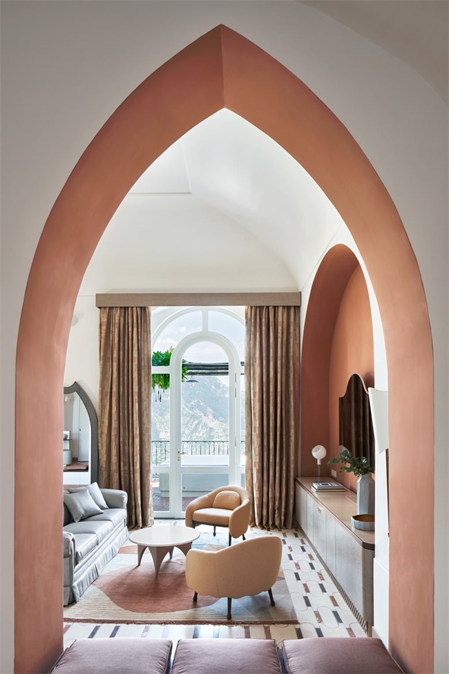 设计师表示,设计想法是通过思考酒店本质以及与拉韦洛和阿马尔菲海岸的联系而产生的。酒店坐落在陡峭的鹅卵石小巷上,就像粉红色的海市蜃楼,坐落在橄榄树和柑橘树的梯田中。位置难以到达,却又是比预期更加非凡的目的地,宾客可从柳叶刀窗中瞥见令人惊叹的海景和地平线。设计灵感来自意大利拉韦洛花园奇观以及被遗忘的提尔尼安海传说的奥德赛。