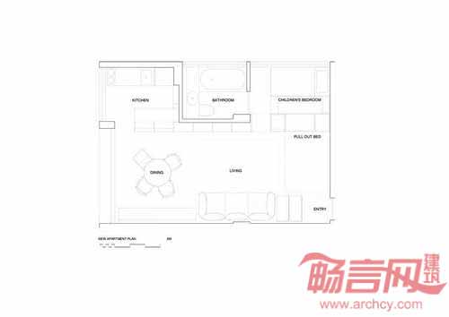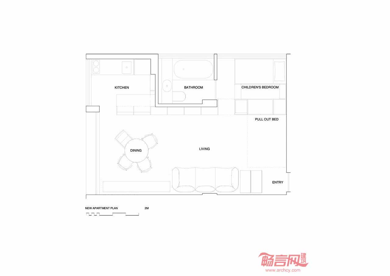 建筑位于澳大利亚悉尼市,公寓面积为38平米,项目对其进行了设计改造。设计思路是以尽量低的成本满足成员增多的家庭需求。业主希望为年幼的女儿提供独立的睡眠区域,增大起居空间,并解决储存空间问题。