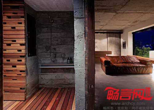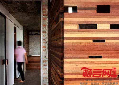 设计师借鉴了手工匠工场的布局,将若干功能区容纳在紧凑空间内,同时别出心裁地将浴室搬到了室外。一名当地木匠从被拆除的建筑中寻觅到了旧木材,设计师与其合作,将回收的硬木造成了网格屏风。在不使用浴室时,木屏风可以合上,从而增大阳台空间。