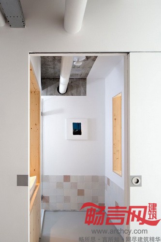 “房子里原来的门全都换成了滑动门,如果将所有门都拉开,房子的各个部分就能贯通成一个整体。原来较低的吊顶都被拆除了,一些老管道都直接暴露在外,这样也能增添一些怀旧感。”设计师说。