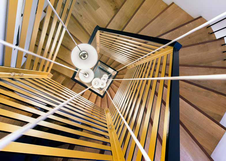 法国佩圣热尔维市政府委托Zoomfactor建筑事务所对其市政厅进行室内改造,增建其空间容量,并加建一个档案室。佩圣热尔维市位于巴黎郊外,新建设施位于历史建筑门厅的西立面一侧,另一侧建筑已于1980年进行了扩建。项目最大特色是螺旋形楼梯,方便所有楼层人员通行,同时符合最新的消防规范。围绕预制混凝土楼梯蜿蜒的线性扶手采用斜线铁条,与边缘的细长垂直扶手形成对照。