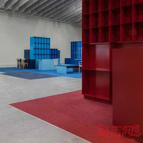 建筑的灰色外表延生到了室内墙面、地面和天花,继而在彩色“浮岛”上产生了变化。