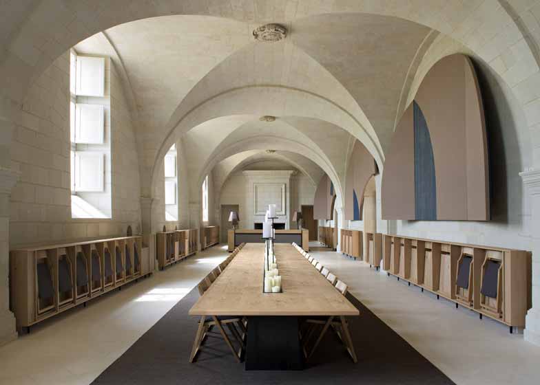 Agence Jouin Manku公司完成了位于法国修道院小城Fontevraud的一座酒店餐厅的改造。项目应用的材料包括木材、金属、织物,改造成了这个原本为修道院的石质建筑。设计师Patrick Jouin和Sanjit Manku受到委托,改造Saint-Lazare修道院以及四座附近小型修道院室内区域,融入21世纪的美学和科技,同时不影响建筑原有结构。1980年代,这座原本的教士医院被转变成酒店餐厅功能。