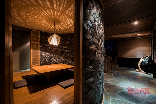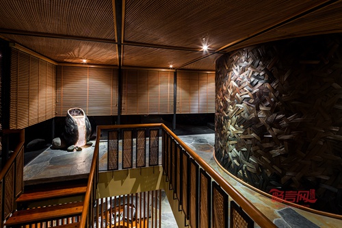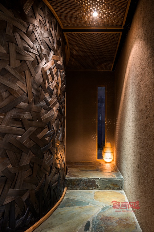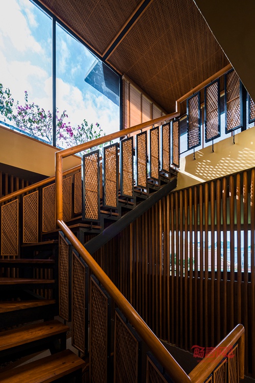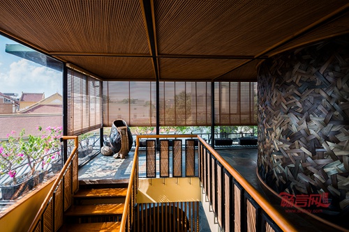 本项目室内墙壁和灯柱设计的灵感均来源于越南的一种传统的手工编织灯具。这种传统的编制技艺被大量用作本项目室内设计元素,不仅包括门和隔墙,连天花板和扶手也是手工编织的。各个元素组合起来,营造一个独特而舒适的空间。