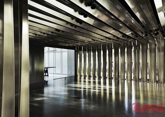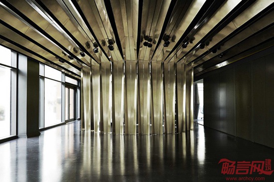 Bureau de Chane建筑事务所设计了其位于伦敦切尔西办公室。项目旨在赋予工作室强烈的个性特征和适应未来需求改变的灵活布局。办公室中央设有椭圆形的“小房间”,外围由若干铜条组成。这一雕塑特征沿着整个天花板排布,营造出通透的表面,覆盖在玻璃墙面的外沿。铜条呈现出放射性布局,回应了中央核心系统,创造出波纹般的效果。