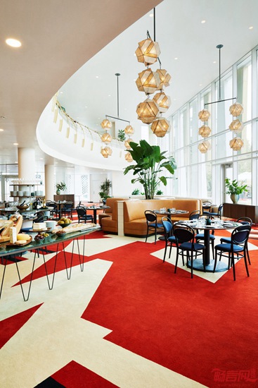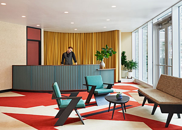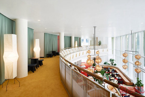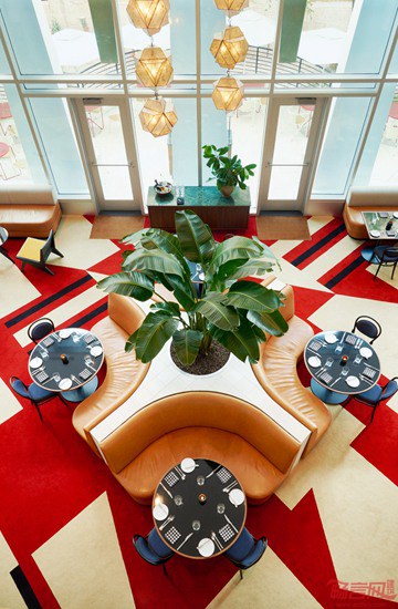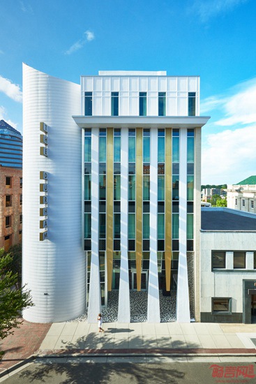 Durham酒店位于北卡罗来纳Durham市中心,将一座建于1965年的现代办公楼改造成精品酒店。项目外立面设有几何图案和复古装饰元素。项目设在此前的Mutual Community储蓄银行内部,后者由Perry Langston于1960年代完成。洛杉矶Commune Design公司负责该酒店改造项目。建筑共有六层,设有金色和白色立柱以及白色圆筒顶部结构。项目很大程度保留了原有结构,外立面增加了垂直的单列字母名称。