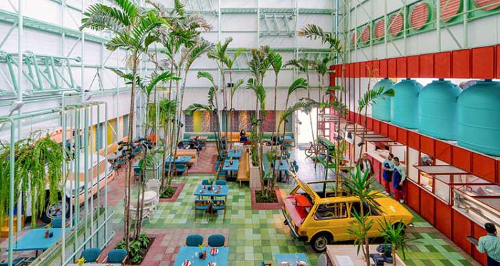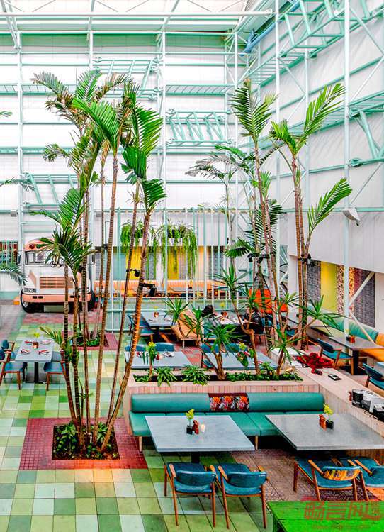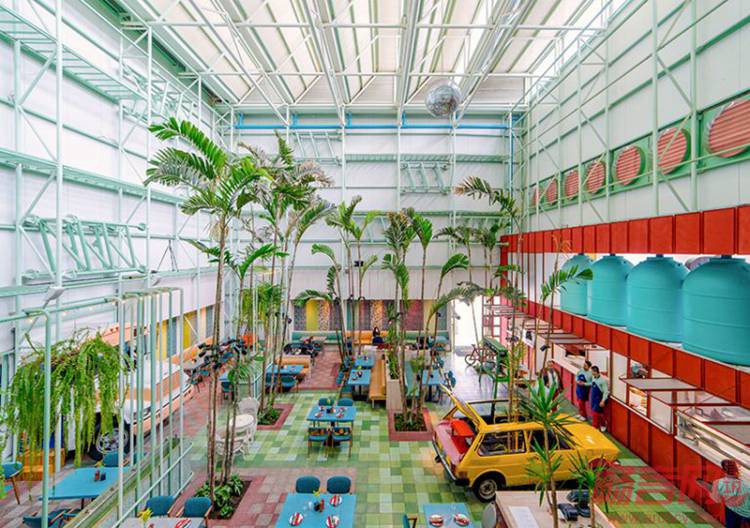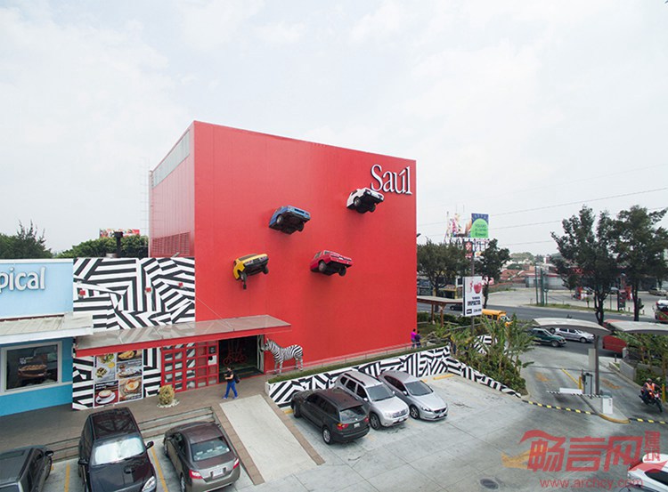 Madero咖啡餐厅高度达15米,是一座红色单体建筑,周围是城市最繁忙的公路。餐厅室内装饰以中性风格为主,其间穿插了诸多突出的汽车元素,和巨大的立方体构成对照。外立面让建筑成为道路中的地标,过往的司机会在塞车时注视到别致的建筑。