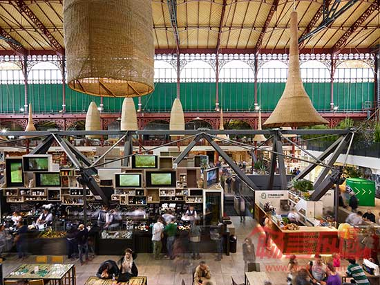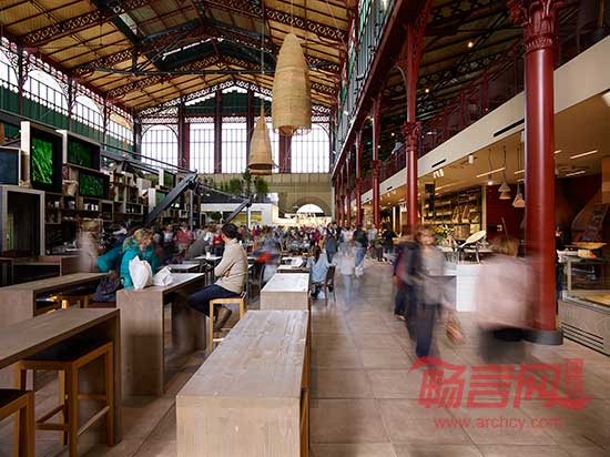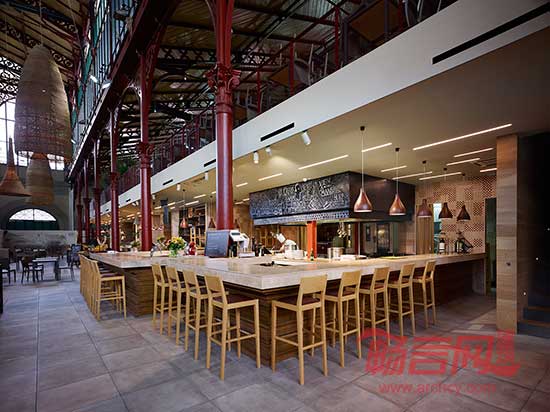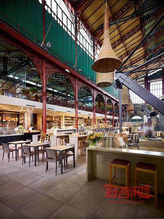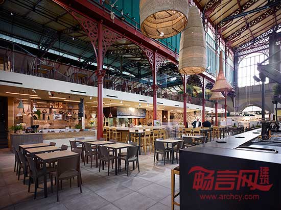项目不仅仅局限于室内设计,它是一个构思于城市规模的覆盖性建筑,那里有19世纪轻型且灯火辉煌的钢架结构设计,它着重运用自然且简单的材料(如木头,席子,绳索,陶瓷及染色水泥)以及灵活机动装置,和大号柳条及甘蔗灯,这些可以使市场的空空如也的空间用微妙的形式进行填充及完善。总得来说,建筑工作大大增强了食品摊位的艺术质量和气息。