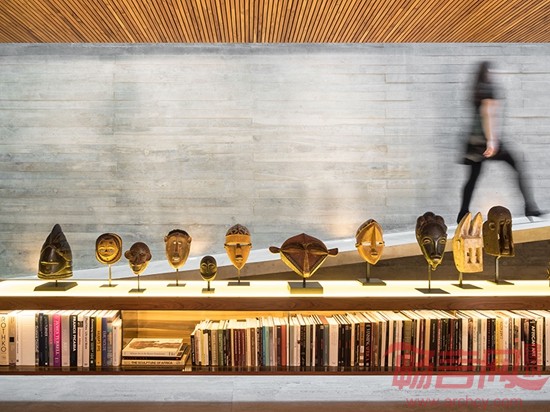 由于房屋业主希望将部分居住功能转变成文化展示功能,设计师对房子的布局进行了相应的设计。社交区域陈设了手工艺展览品,比如精心布置的非洲面具。这样一来,艺术品融合了日常生活器件,室内生活与历史年代感相融,而且并不会给人以生活在博物馆的感觉。