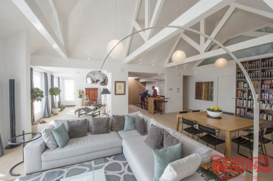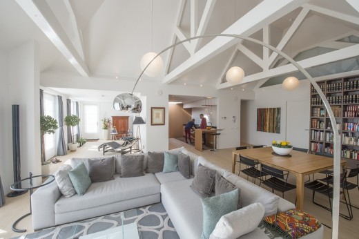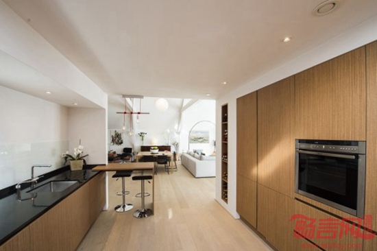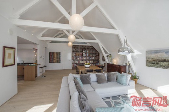 鹿特丹F住宅是由Kralings博物馆改造的一座建筑。这所豪华住宅楼包含三套公寓,共享一个入口和电梯。其中F住宅位于二层,面积193平米,包含25平米的户外空间。室内最大层高为6米。天花和衡量结构是设计的核心成分。楼梯和电梯连通走廊,后者与起居室、主卧、客卧、客卫相通。
