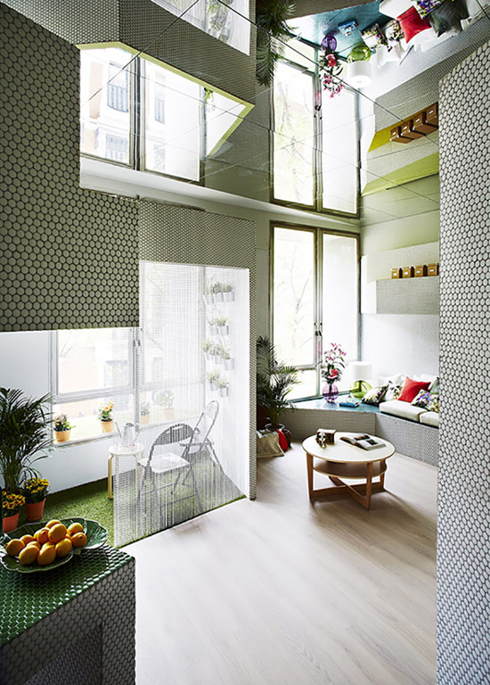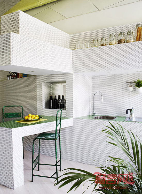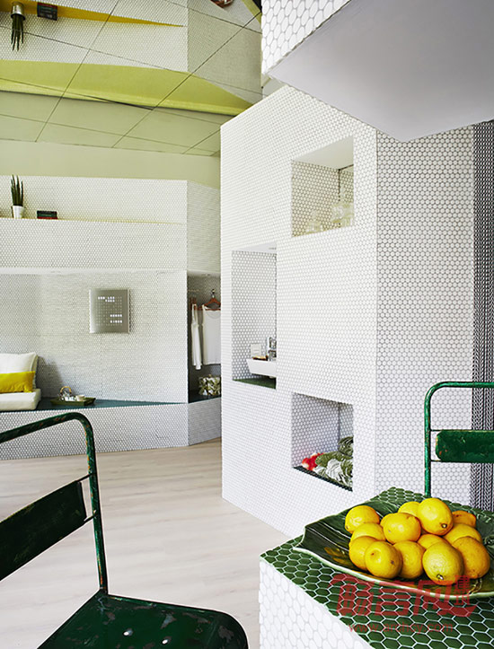 西班牙马德里的建筑事务所Zooco Estudio将当地一个36平米的开间用马赛克装饰成了一套舒适公寓。