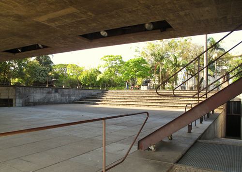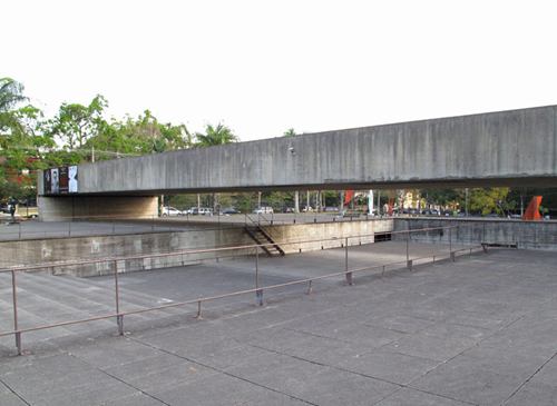 不经意间,你很有可能错过巴西国家雕塑博物馆的存在。作为普利策获得者保罗·门德斯·达·洛查公认的杰作,这个建筑事实上是按照地面上完全没有建筑的初衷来建造的。1980年圣保罗满是大厦的Jardins区有一块空地被规划用来建造购物中心,而居民中的富人成功说服修建公共广场而不是购物中心。为了获得更好的效果并且确保整个场地的非商业化,他们聘请Mendes de Rocha事务所来设计建造了这个博物馆。这个7000平方米的博物馆于1995年完工,有一半位于地面以下,并保留了圣保罗的一块珍贵的公共绿地空间。