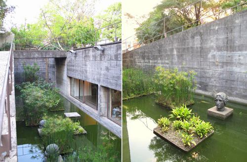 保罗·门德斯·达·洛查长期以来被与作为巴西野兽派而广为任何的保利斯塔学校相联系在一起。他的追随者,包括Joaquim Guedes and Lina Bo Bardi,因善于使用最简单的材料和形式尤其是未经加工过的长块混凝土来跨越巨大的空间而著称。而在这个博物馆中,由于大部分处于地下,所以保罗并没有采用这样的手法而是使混凝土块漂浮了起来。然而他还是在建筑中使用了了一个经典野兽派的手法——一个很长的,难以定义的结构,看起来就像是一个长长地桌子或者长凳。除了让博物馆免受城市强烈的日晒和夏季的暴雨,它还定义了室外雕塑花园空间的边界。由建筑师Roberto Burle Marx设计建造的花园景观不仅仅是保罗.的博物馆的一个装饰。花园成为了博物馆自身不可分割的一部分,花园中展示着诸如Ivald Granato 和Francisco Brennand等雕刻家的不朽作品。站在作品前,你几乎完全不能感觉你也站在巨大博物馆的顶端;随后自然的曲线还是逐渐让步于混凝土和博物馆锐利几何形式的屋顶。最终,台阶和坡道引导你进入博物馆半地下的入口。