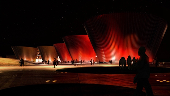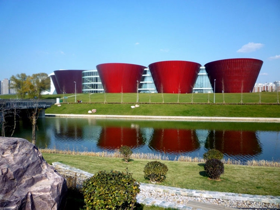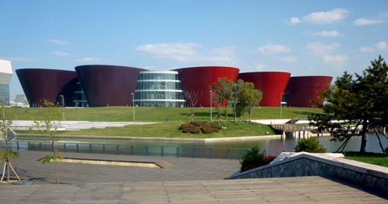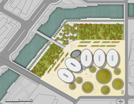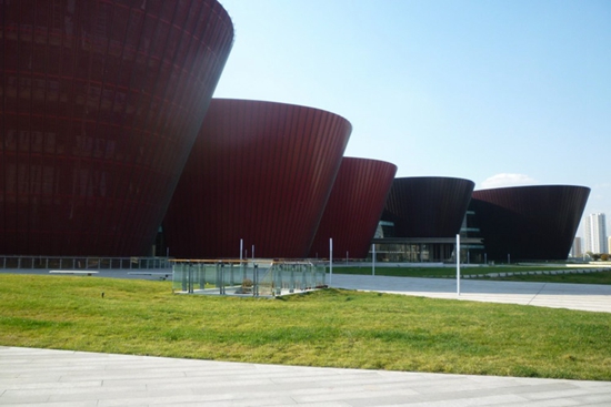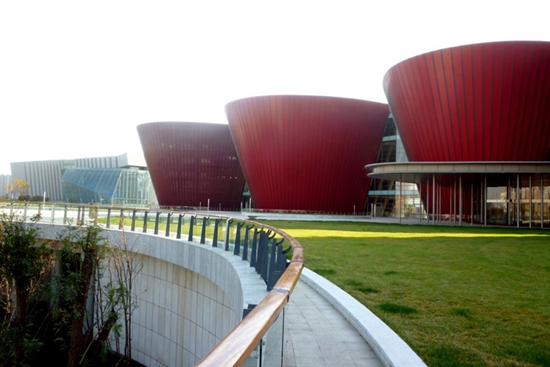 山西省太原位于北京以南,常住人口330万,山西市政府委托保罗•安德鲁为城市设计了这座考古博物馆。安德鲁与其新合作方Richez Associés建筑师事务所在BIAD(北京市建筑设计研究院)共同开发了这个项目,并特别设计了展览层、主体结构与立面结构:博物馆的五个主要体量均为椭圆锥体,以垂直的Kliplock面板覆盖,而中间的玻璃连廊强化了两种立面的对比效果。