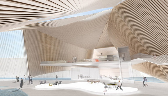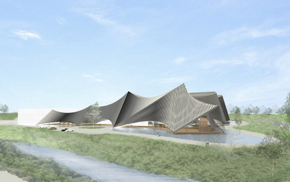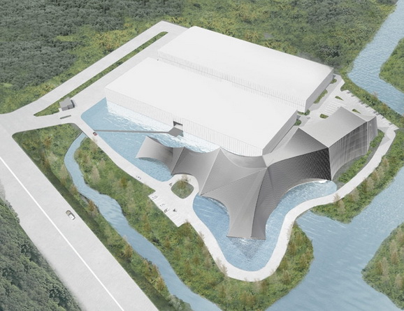结合中国江南水乡的秀美环境及建筑周边河水环绕、视野开阔的实际情况,隈妍吾事务所提出了“山峰”为主题的设计概念,将建立一座最高点高度24m的建筑。雕塑建筑仿佛层层“山峦”环绕在湖边,以达到建筑与周围景观之间的和谐统一感,并将通过富有特色的建筑材料塑造出优雅个性的“形态与轮廓”。