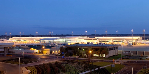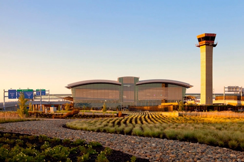 萨克拉门托国际机场始建于1930年,是美国加利福尼亚州首府萨克拉门托的一座民用机场。占地约为219公顷(22平方千米),位于市中心商业区西北方约10英里(16公里),州际公路5附近。机场超过一半以上吞吐为美国西南航空的乘客。新航站楼是芬特雷斯建筑事务所和库根建筑师事务所共同承接的项目。巨大的玻璃幕墙和天窗设计有助于获得更加充足的阳光,同时也减少了能源消耗。航站楼内的一系列节能设计包括:玻璃幕墙上覆盖的太阳能板、减少阳光辐射的低辐射镀膜玻璃、再利用建筑用材、自然通风装置。