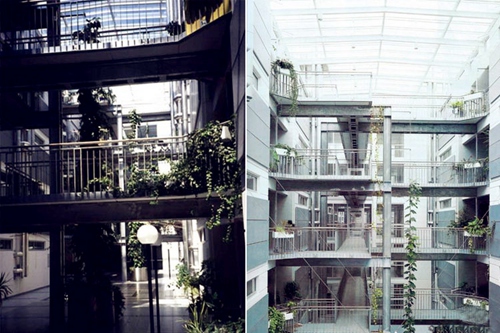 设计的显著特征是一个带玻璃顶的中心入口门厅,它提供了自然通风,并有良好的绿化环境供人们休息和聚会。从能源节约上,它起着重要作用。阳光直射和从周围墙体中直射出的热量使厅内温度升高,冬天,可以大大降低其暖气需求量。而在夏天,热量从门厅经有屋顶的通风口排出,冷空气从地面进入室内,保证舒适的室内温度。