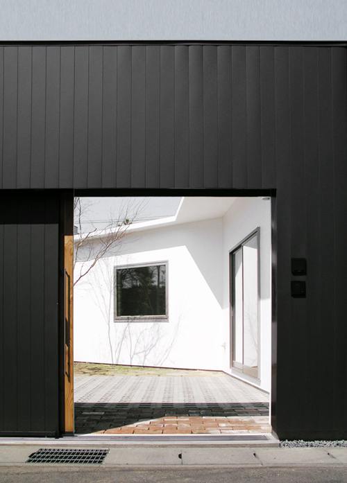 整个住宅从外部看就像是一棵黑色巨树被切出一段的表情。业主一家四口便住在这个如同被树皮所包覆的洞里。