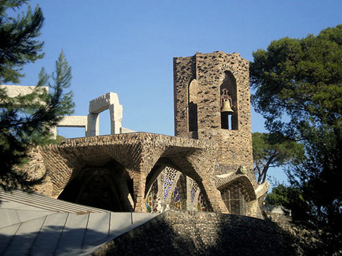 奎尔住宅区教堂地下室(ESGLéSIA DE LA COLONIA GüELL)建于1908 年- 1917年。包含一座纺织工厂、一大块住宅区,以及一栋小教堂。不过,高第仅亲自完成奎尔村教堂的地窖部分,其余村镇上的房舍则由高第的两位门徒F Berenguer、J Rubio i Bellver所完成,整个村镇整齐画一的建筑风格,令人印象深刻。