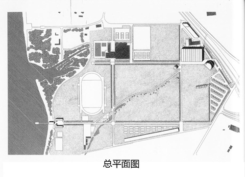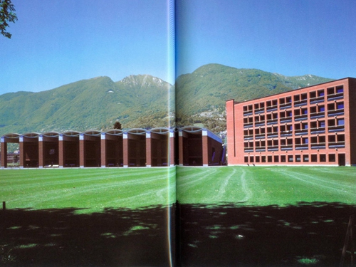 国家体育中心是瑞士体育联邦局委任的一个项目,它要求在其内能安放各种不同的体育装置和运动场地。这个联合体由两幢建筑组成:主中心是体育馆和其他一些公共设施的所在地;一个半圆形建筑物则充当了住宿和行政的功能。位于南方的中心主入口包含了一个巨型入口区,提供了一个在内外之间的过渡空间,在那儿还能观赏到附近湖泊的美丽风光。整个结构体系由一系列连续的柱廊组成,给予空间必要的弹性,能够满足因不同的活动带来的设计上的变化要求。大小不一的天窗带有轻微的弯曲,它们使自然光穿透屋顶洒落进室内。在这块大场地的北边,一幢结实的附属建筑高耸于街道之上,好像一个站岗的哨兵守卫着中心的建筑联合体,使其免受周围噪音和嘈杂活动的干扰。这两部分建筑都是混凝土框架结构,其外覆着红砖。