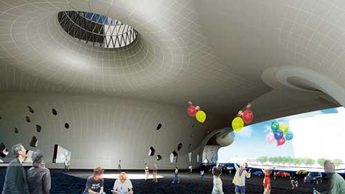 这种连续的体量源于一个简单的剖面轮廓,这种方法可以满足建筑平面及剖面对使用功能的要求,在整个建筑的立面外观变化的同时实现了高精度的施工和标准化的预制结构。