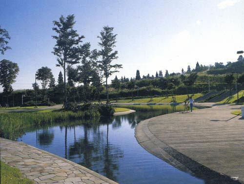 户田先生较早期的代表作品为绿色津南中央庭园(1982年)。此作品位于新泻县中鱼沼郡津南町秋成,面积为4h平方米,这个对公众开放的庭园是周边自然环境与人工景观有机结合的范例。除具有休闲、运动功能外,还包含一个观光疗养基地的部分庭园绿地空间。户田先生充分利用当地的自然条件“水”,做成“动”与“静”两种不同的水景。其中,“静”水中的倒影,成为作品中最有特点的景观。此外,通过大面积的缓坡草坪、蜿蜒的小溪和远处起伏的山脉,创造出开放、简捷、舒展、轻松的氛围,体现出东方文化的特有魅力和无限的想象力。