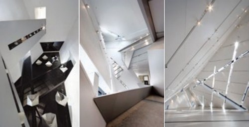 巨大的中庭从首层直通四层,各个楼层都有桥体通道纵横交错,旨在将“精神家园”打造成为供游客们沉思的场所。第四个晶体为“奇妙楼梯”,既作为垂直流线之用,同时充当楼梯平台处的玻璃展览橱窗。第五个水晶体内容纳着主要的新餐厅。