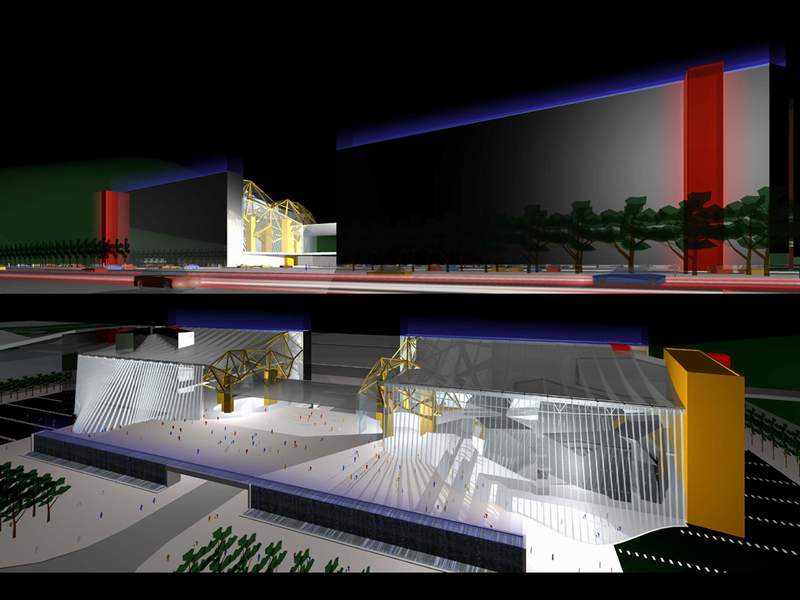 该方案的宗旨是要把深圳文化中心建设成为深圳中心区这个大剧场中的一个重要舞台。由深圳中心图书馆和深圳音乐厅构成的统一整体,形成了一个面向宽广的中央绿化带的开放空间。在这里,市民可以自由自在地从事各种文化娱乐活动。
