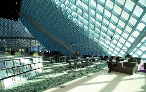 西雅图图书馆的形式一度曾十分流行。该作品的创作来源于库哈斯对图书馆及其一系列相关概念的反思。