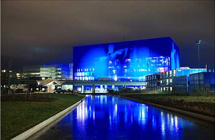 对于努维尔来说建筑设计从开始构思到施工完成更象一部电影的形成。这种电影似的分析在努维尔的作品当中很多方面都可以看得出来。首先我们知道电影的画面并不是作为电影构成的最终结果,本身它就是一个媒介,一个可以从许多层次上理解的信息的载体。很显然对于努维尔来说建筑是一个符号的系统,这种符号的语言并不是象传统建筑那样表现在立面。对于一个建筑来说它更象是在文脉中生长并且代表所处的地点同时代,建筑语言必须从许多其它方面得出,这些方面包括文化、社会、其他媒体等各种地方但就不是建筑本身。既然我们生活在一个视觉文化不断增加的时代,那么电影电视以及互联网的语言对于今天的建筑来说就是合适的。这种符号的系统不仅像在大家所熟知的阿拉伯研究中心(右图)那样,与建筑的外表面的装饰有关。这样的符号含义只能是整体结构涵义的一层,并且确实这样一个系统自己就应该是多层次抽象和变化的。好像我们有很多方式来欣赏一个电影——它的美学,它的动感,他对颜色以及语言的使用,它的叙述性的结构,它的个性等等——我们也可以有很多方式来欣赏一栋建筑。努维尔的作品正是想在不同的甚至对立的假定和情形之间求得一个综合。