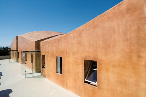 由于整个木质结构——横梁、木椽和胶合板暴露在三层室内空间,屋顶施工必须在隔离屋顶进行。屋顶由一个胶合板剪切隔膜组成,硬性绝缘,顶端为防火水泥板外壳。已竣工的表面被应用于水泥板中,是一种为此项目量身定做的透明的现场喷涂纤维玻璃材料,使整个建筑的外部表层防水,并且和独特的弧度无缝对接。现场喷涂纤维玻璃在该项目中首次使用。